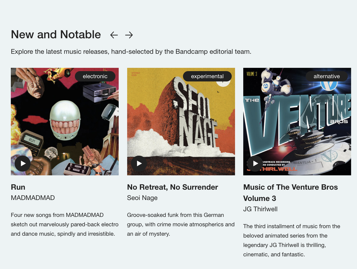 - Bandcamp – JG Thirlwell’s Venture Bros Vol 3 in New and Notable column